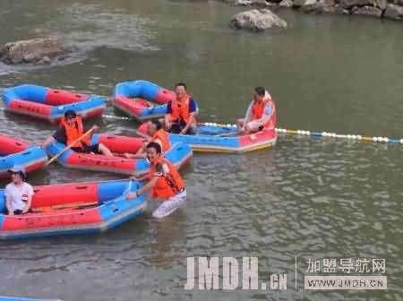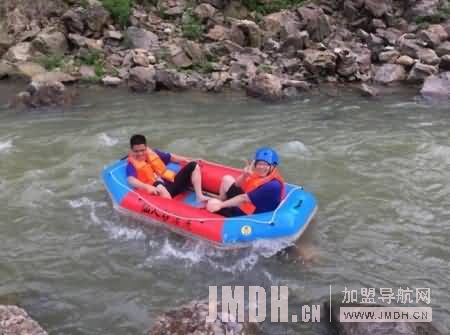 两人一组皮划艇漂流,嬉戏着互射水枪,打水仗;欢声笑语回荡在了整个溪涧。