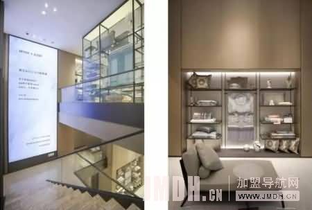 这样一来,顾客不仅从一进门开始就能一眼望见二楼乃至三楼的空间指引,更在视觉上丰富了店铺造型的展示需求。