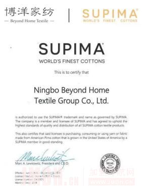 博洋家纺与美国国际棉花协会SUPIMA签约证书