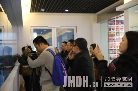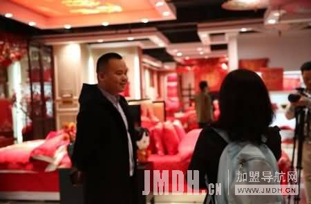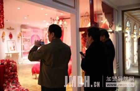 看到婚庆展馆一片喜庆的颜色,考察团队纷纷拍照留念