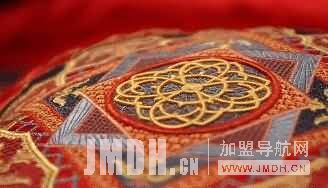 被套上的绣花小巧精致,外框八角玲珑,象征日后的生活能够面面俱到,运用的绣线配色丰富秀丽,更加以金银色绣线作为点缀,使其看起来流光溢彩,精致不显繁琐,在简约的基础上又是一款不失简单的设计。