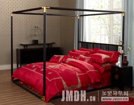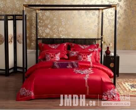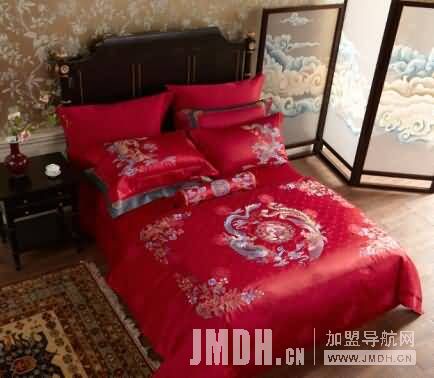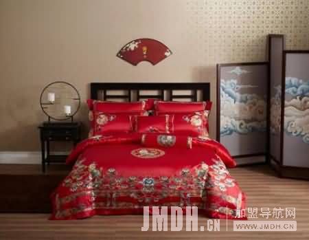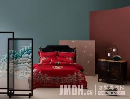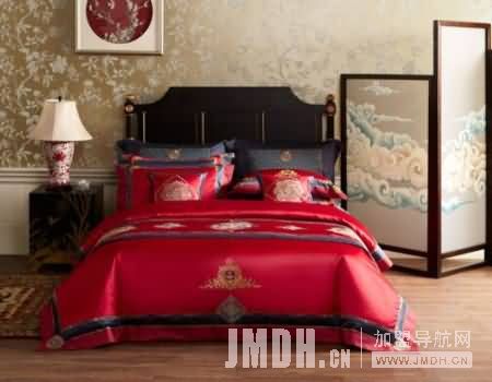 被套两侧各有一个小圆,结合卷草枝蔓,意指通过美好的邂逅合二为一组成一个大家庭,共筑爱巢圆圆满满。