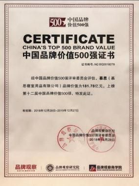 稳!慕思再获中国品牌价值500强