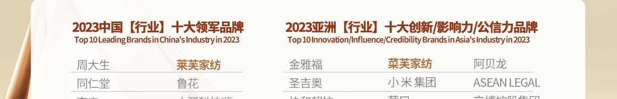 打品牌 “莱芙家纺”源自法国,多年来通过整合国际时尚设计,深入研究人