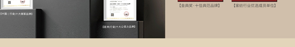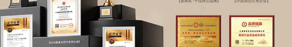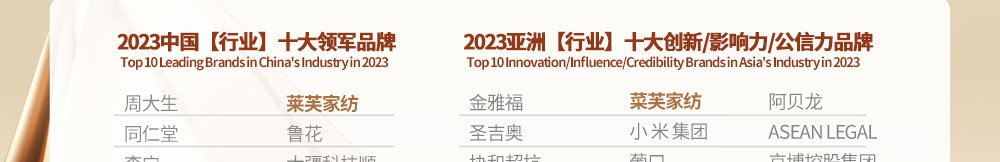 莱芙家纺荣获金典奖,入选"品牌强国"家纺行业优选成员单位,AAA级重合同守信用单位等荣誉称号。
