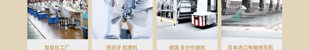 引进美国SensorProducts系统,德国"大象"绗缝机,意大利进口智能生产线等国际一流技术设备。