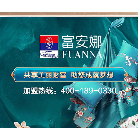 现在加盟富安娜家纺享9大优惠加盟支持!免费获取详细加盟优惠政策、加盟条件、产品图册、投资详情资料,敬请留言或电话垂询。