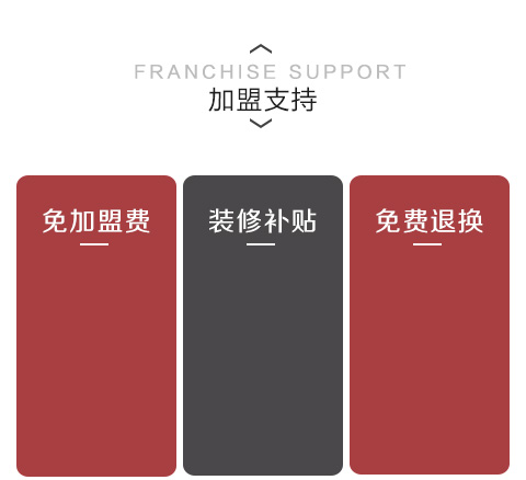 为降低加盟店进货风险和库存压力,给予免费退换货支持,加盟商销售过程中如有产生滞销产品可统一向公司进行退换。