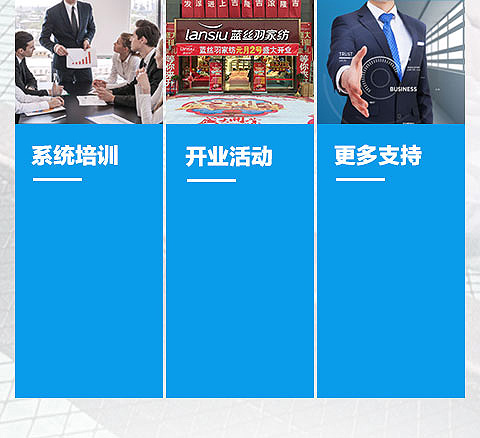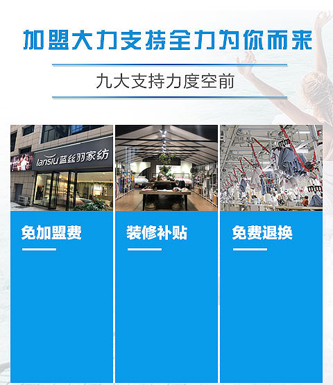现在加盟蓝丝羽家纺享9大优惠加盟支持!免费获取详细加盟优惠政策、加盟条件、产品图册、投资详情资料,敬请留言或电话垂询。