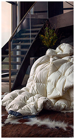精选来自30多个国家和地区的臻稀原材,埃及GIZA45高级原棉、奢品同源7A桑蚕丝、冰岛雁鸭绒等全球9国极地羽绒。