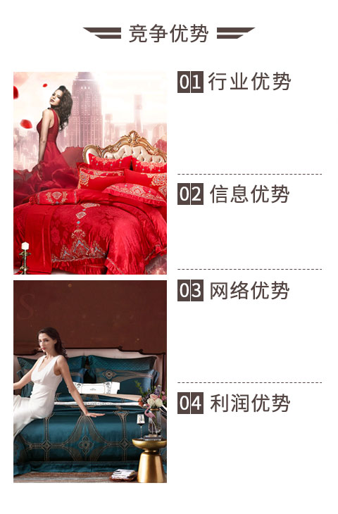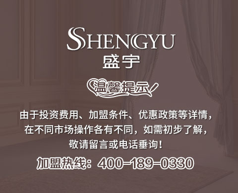 现在加盟盛宇家纺享9大优惠加盟支持!免费获取详细加盟优惠政策、加盟条件、产品图册、投资详情资料,敬请留言或电话垂询。